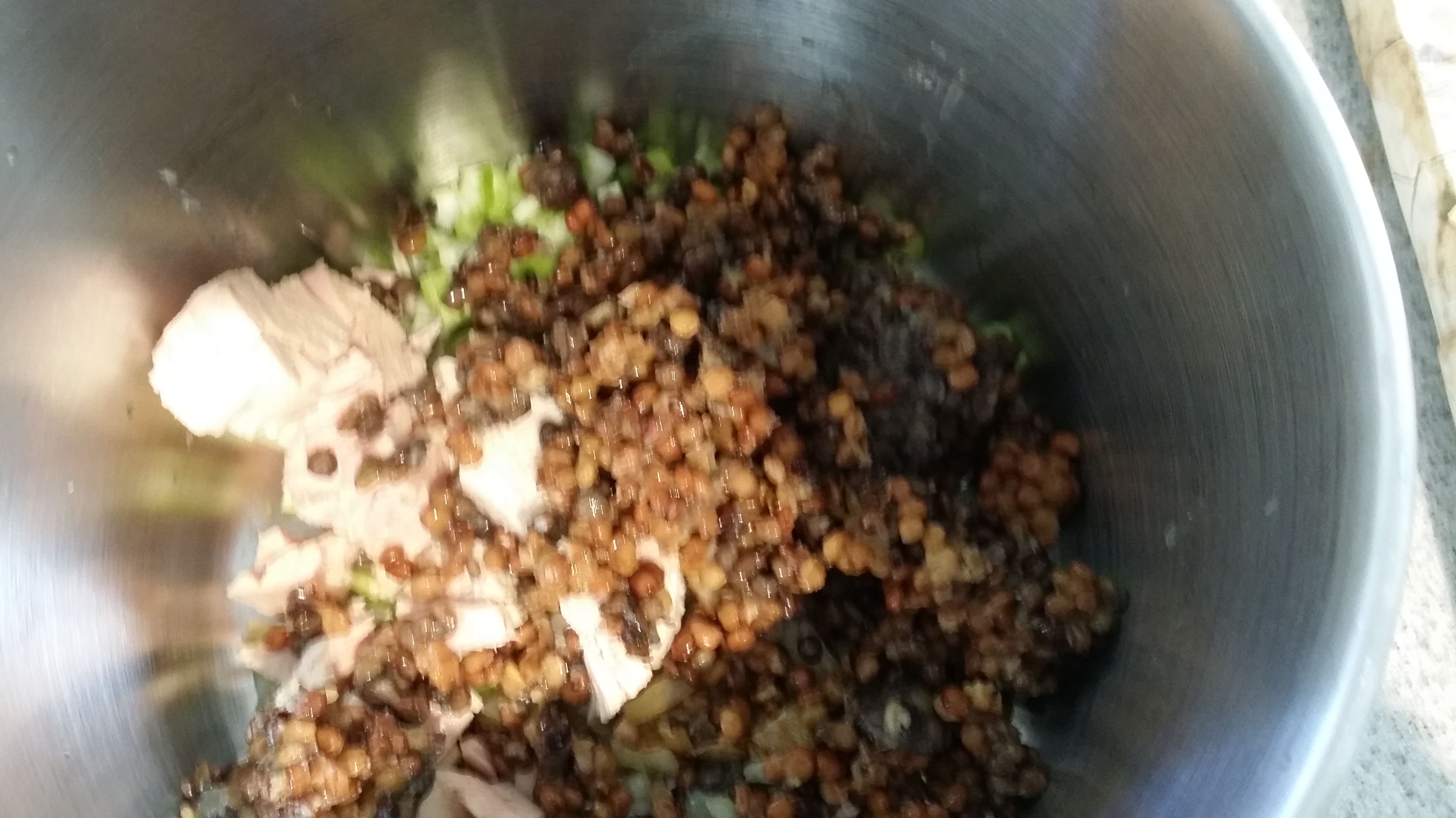 Add tuna and lentils to the bowl. Then add salt, pepper, and mayonnaise.