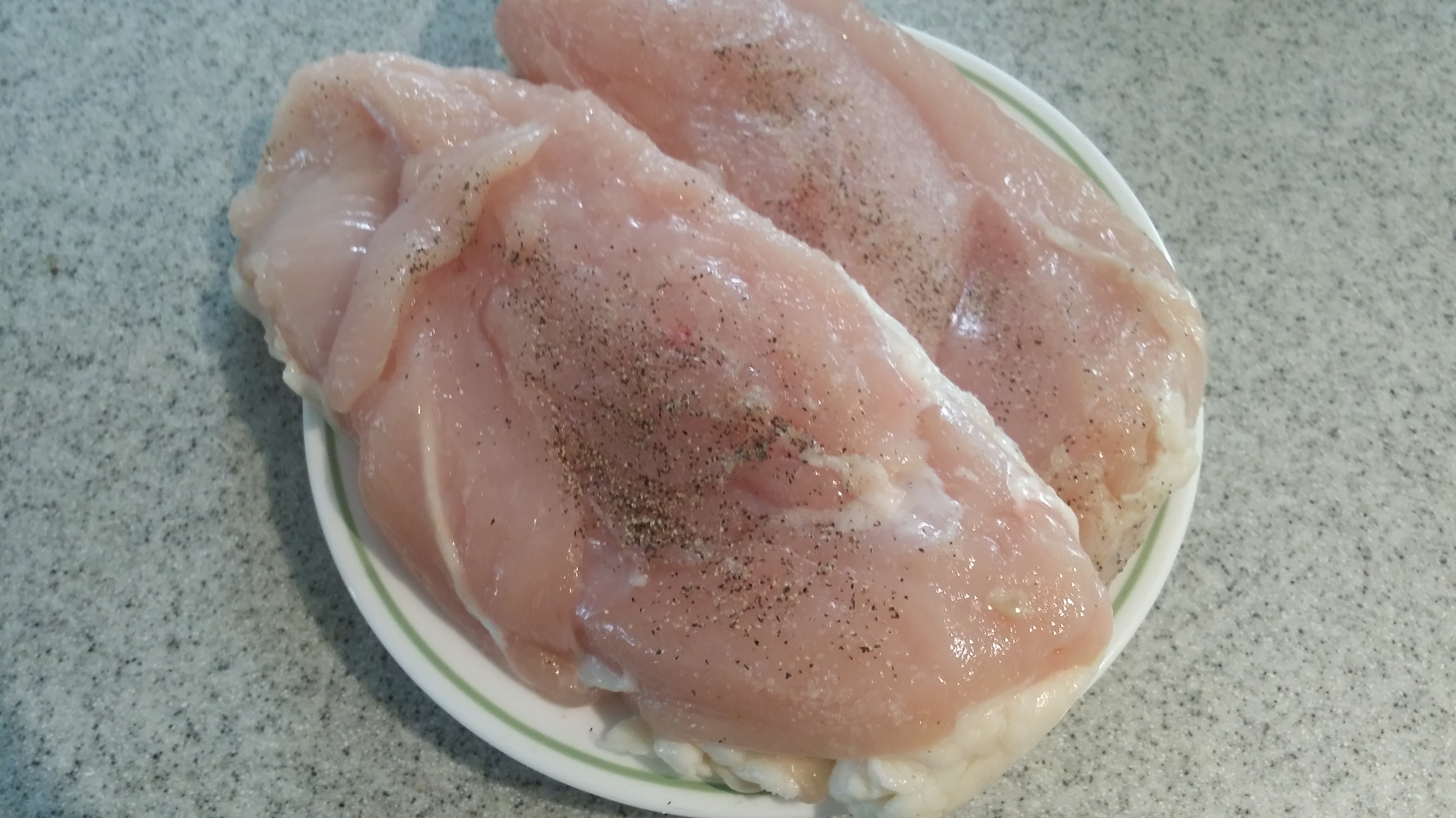 First rub the chicken breast with some olive oil, salt and pepper and let it rest for a couple of minutes.