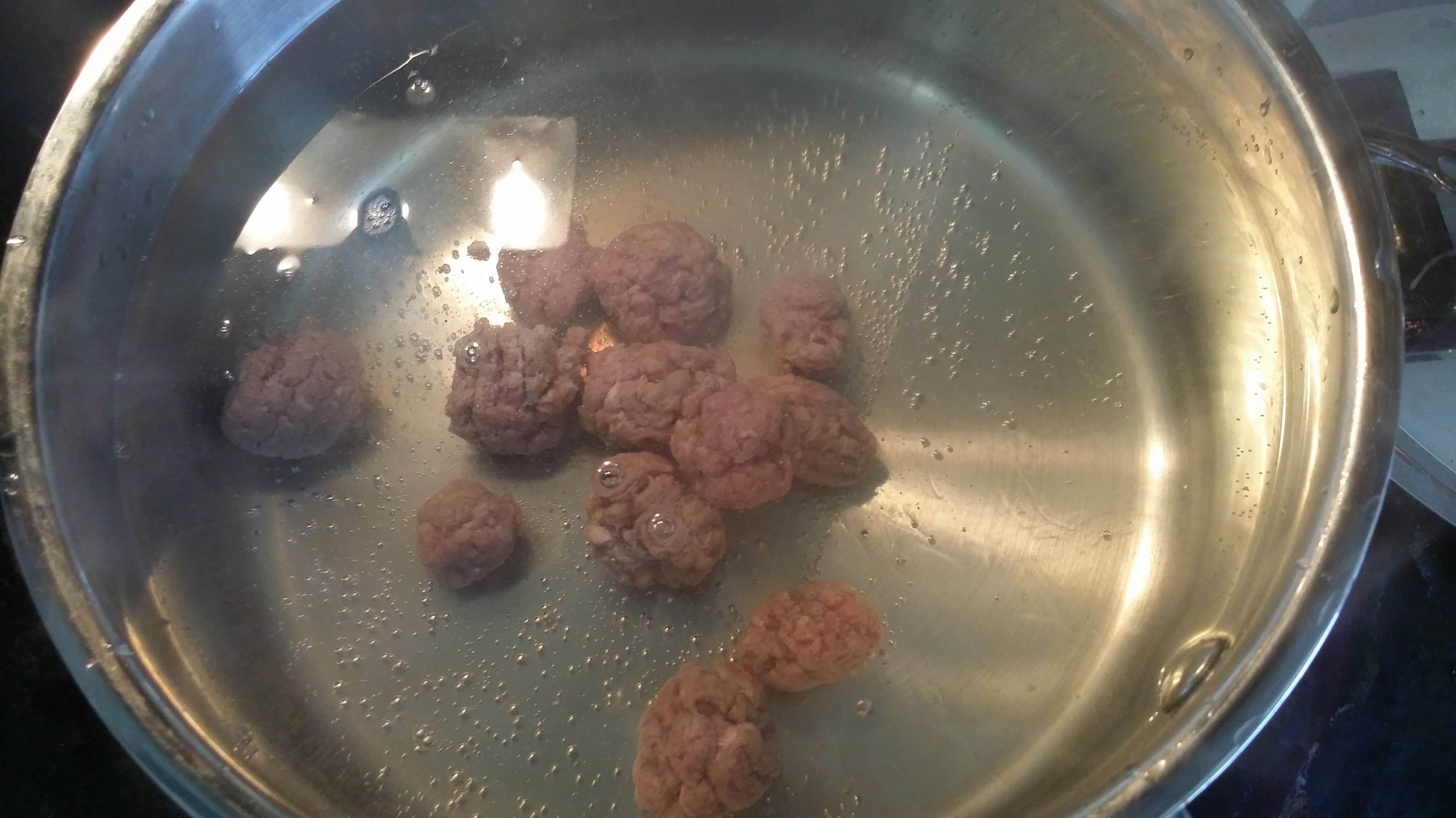 Fill up your medium pot 3/4 with water and let it boil. When the water starts to boil place your meatballs in.