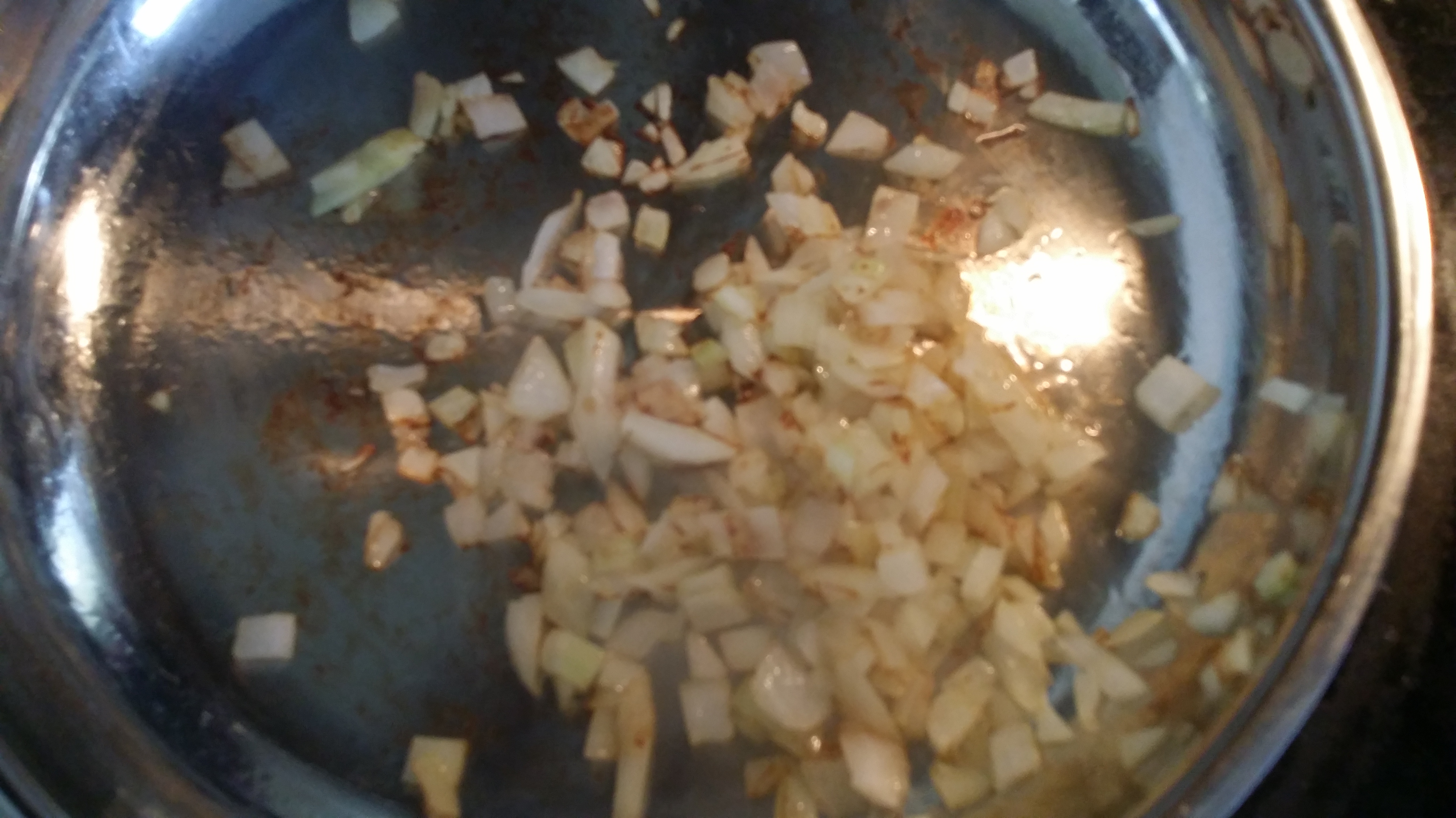 Let the meatballs boil. Meanwhile cut onions and sauté then on medium heat on an oiled pan till golden.