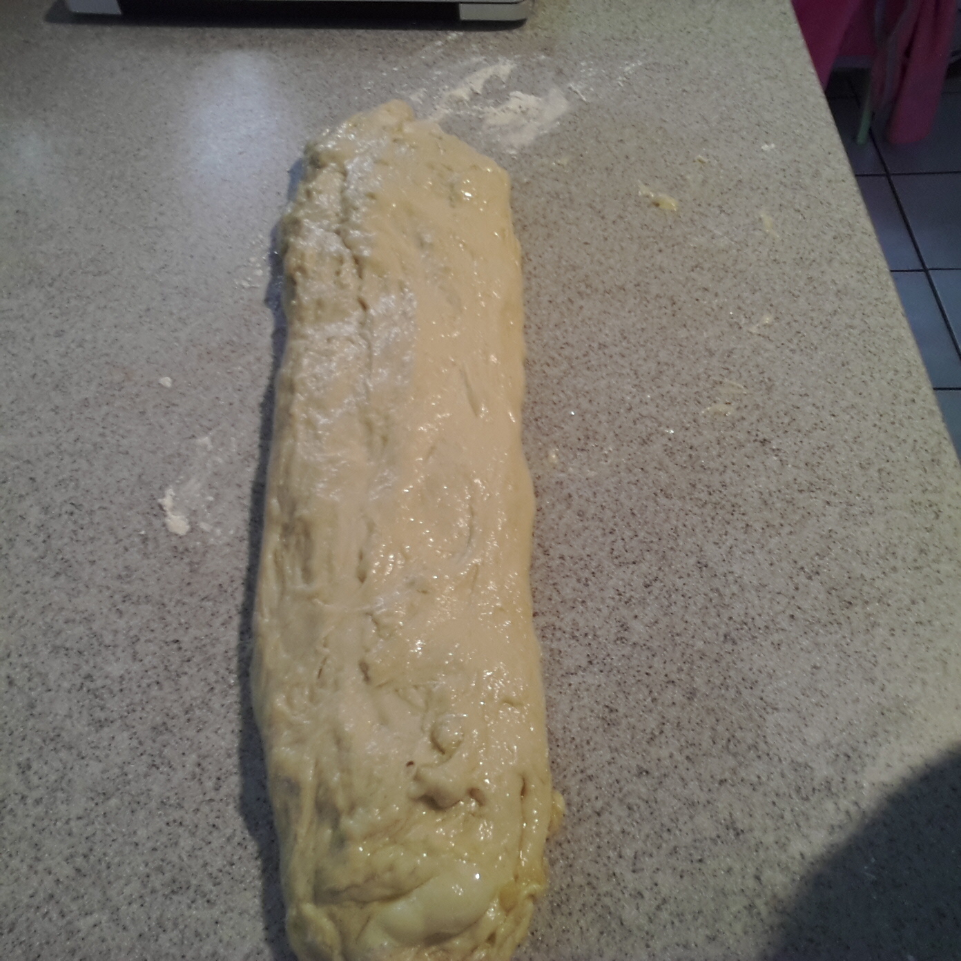 Take the dough and roll it into a long cylinder.