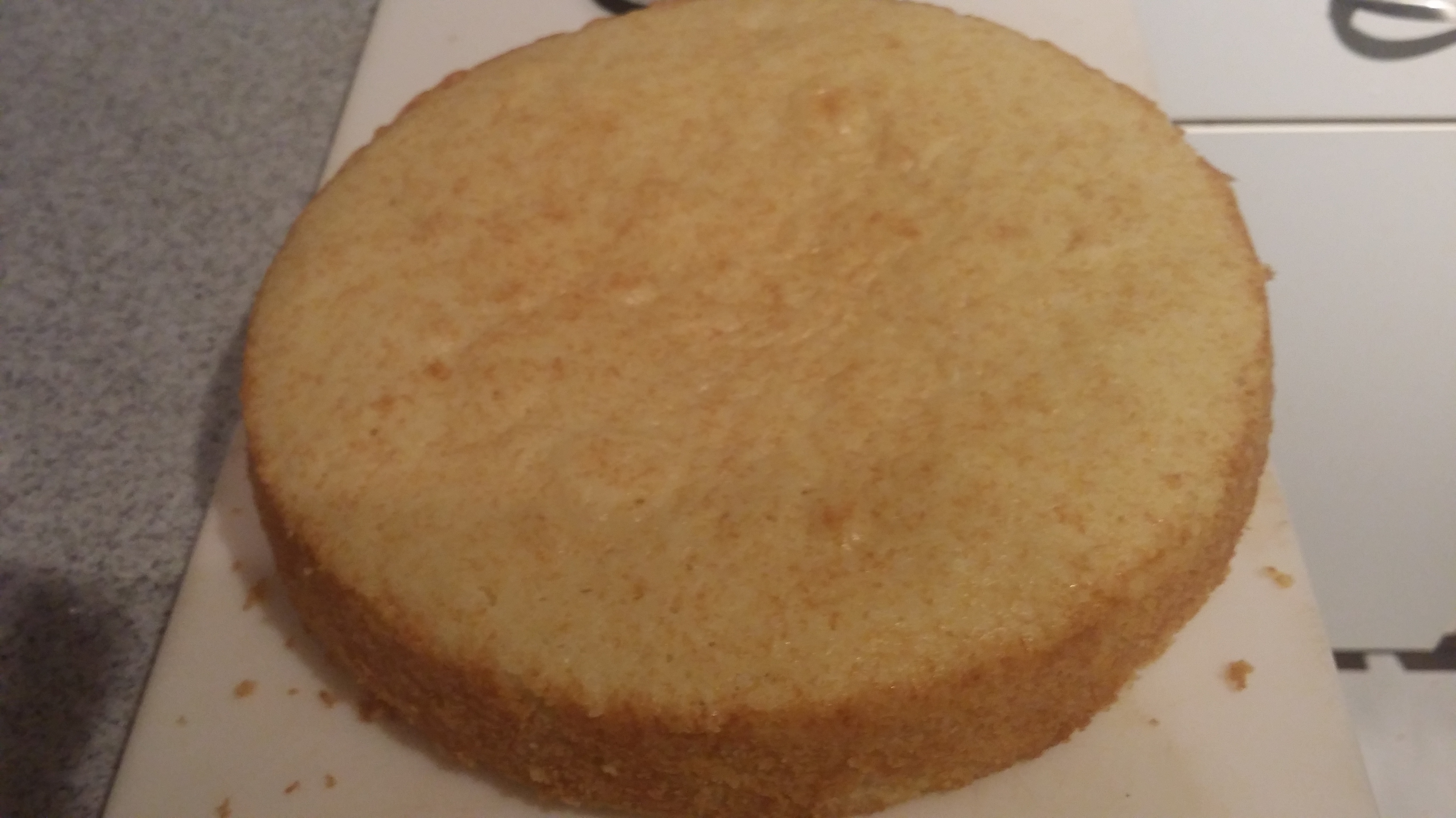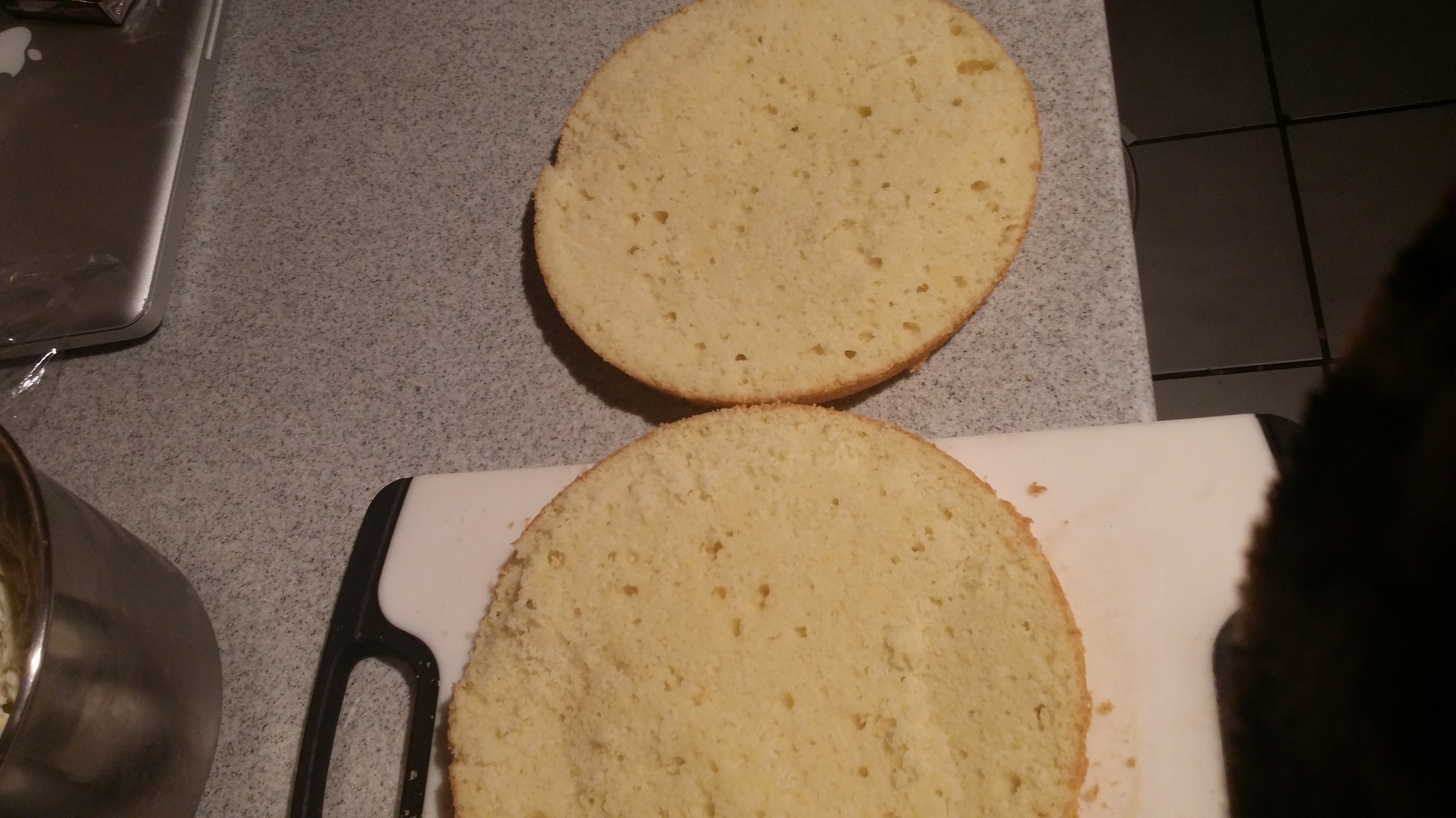 Wait for the cakes to completely cool down. Then cut one of the cakes in the middle.