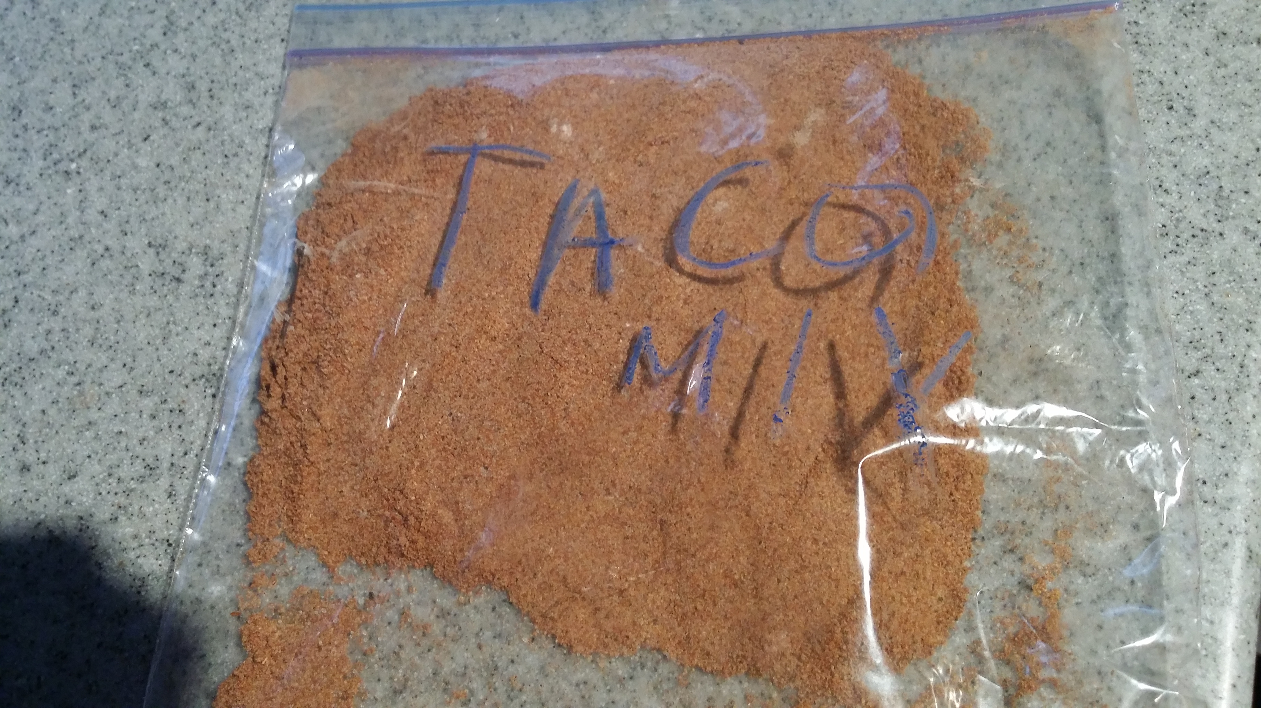 Mix all the taco mix ingredients, place them in a jar or a zip bag.
