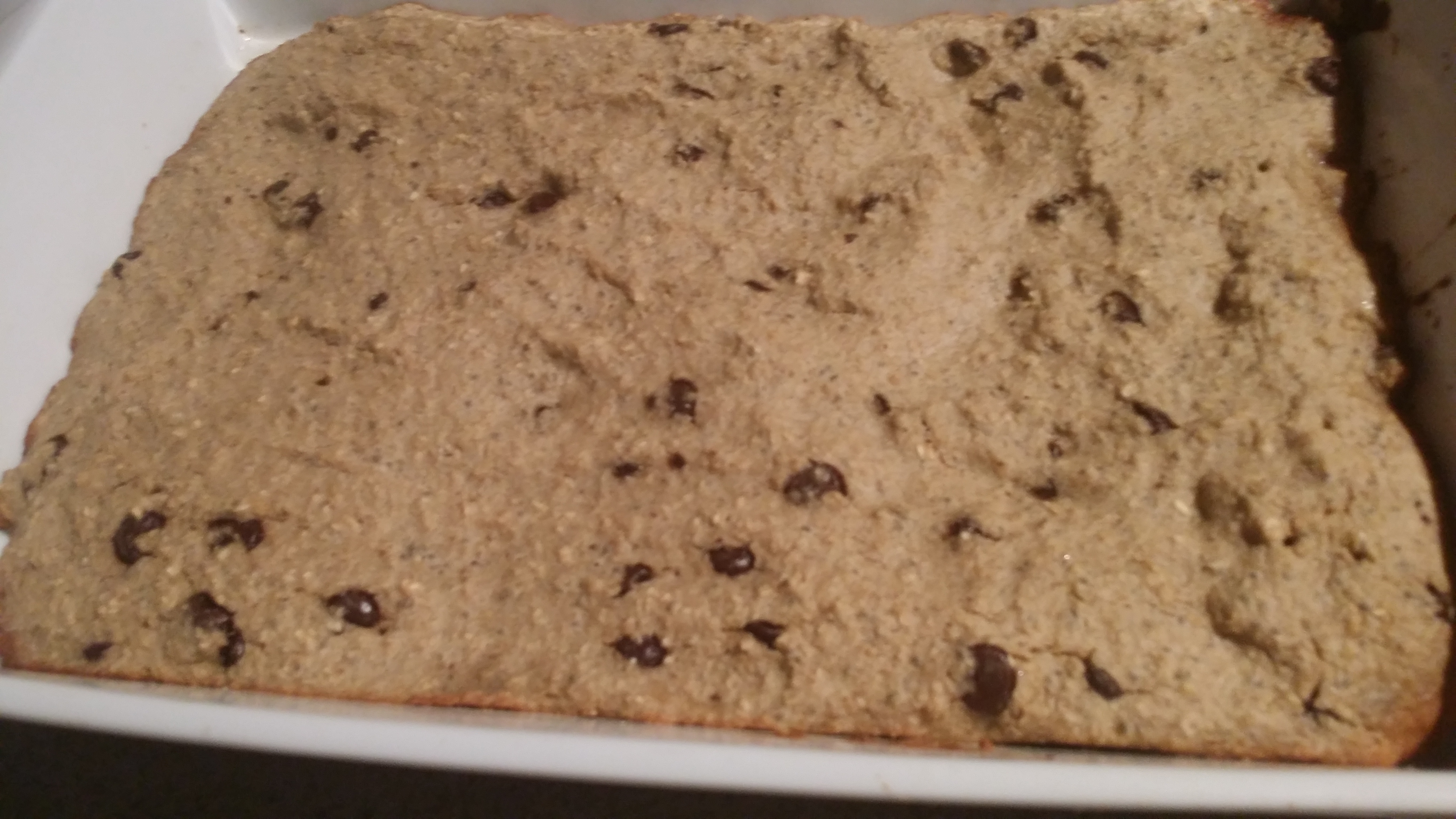 Mix all the ingredients together in a food processor or by a mixer. Pour the mixture into an oiled 9×13 baking pan.