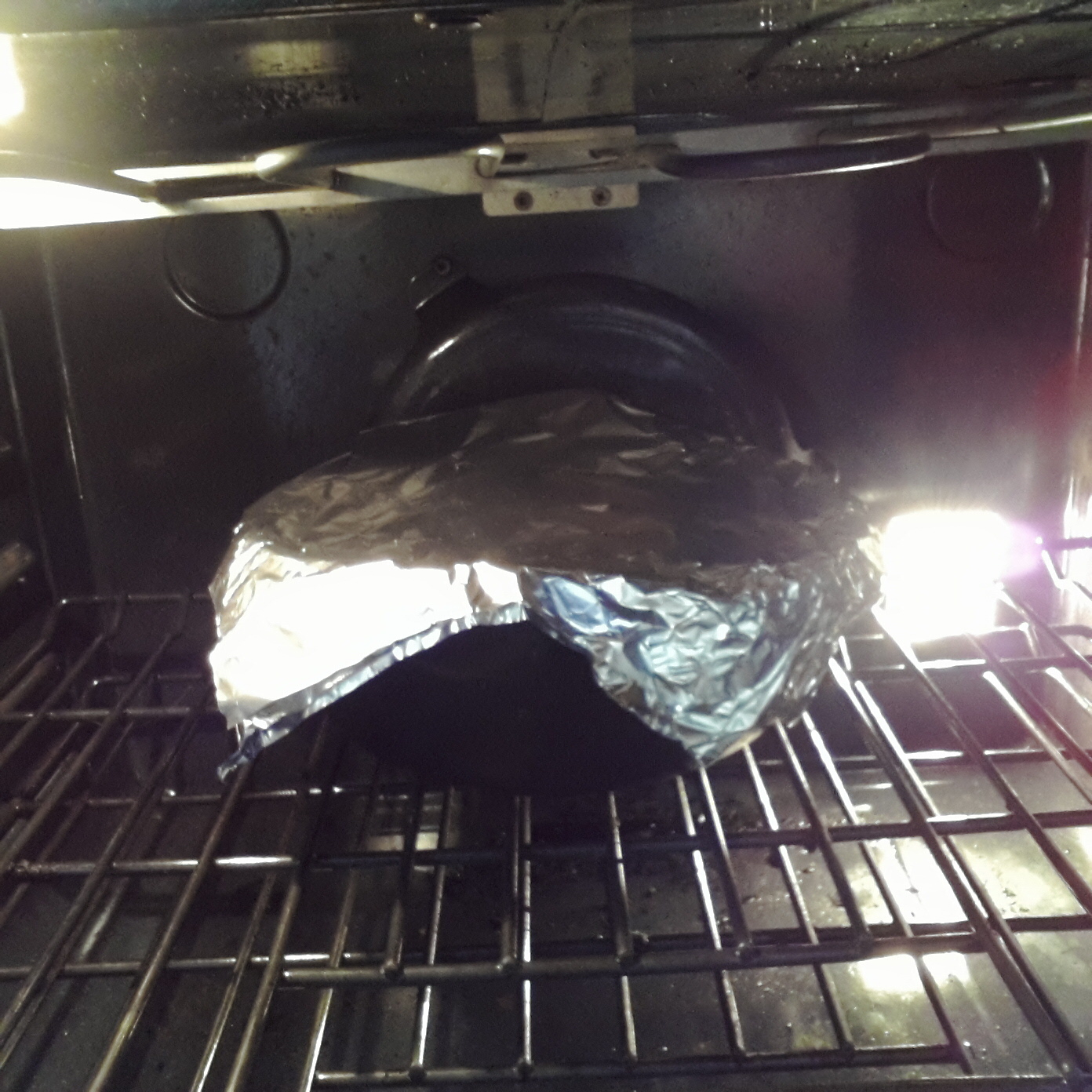 Once everything starts to boil, cover the casserole with foil and put in in the preheated 325F degrees oven for about an hour.