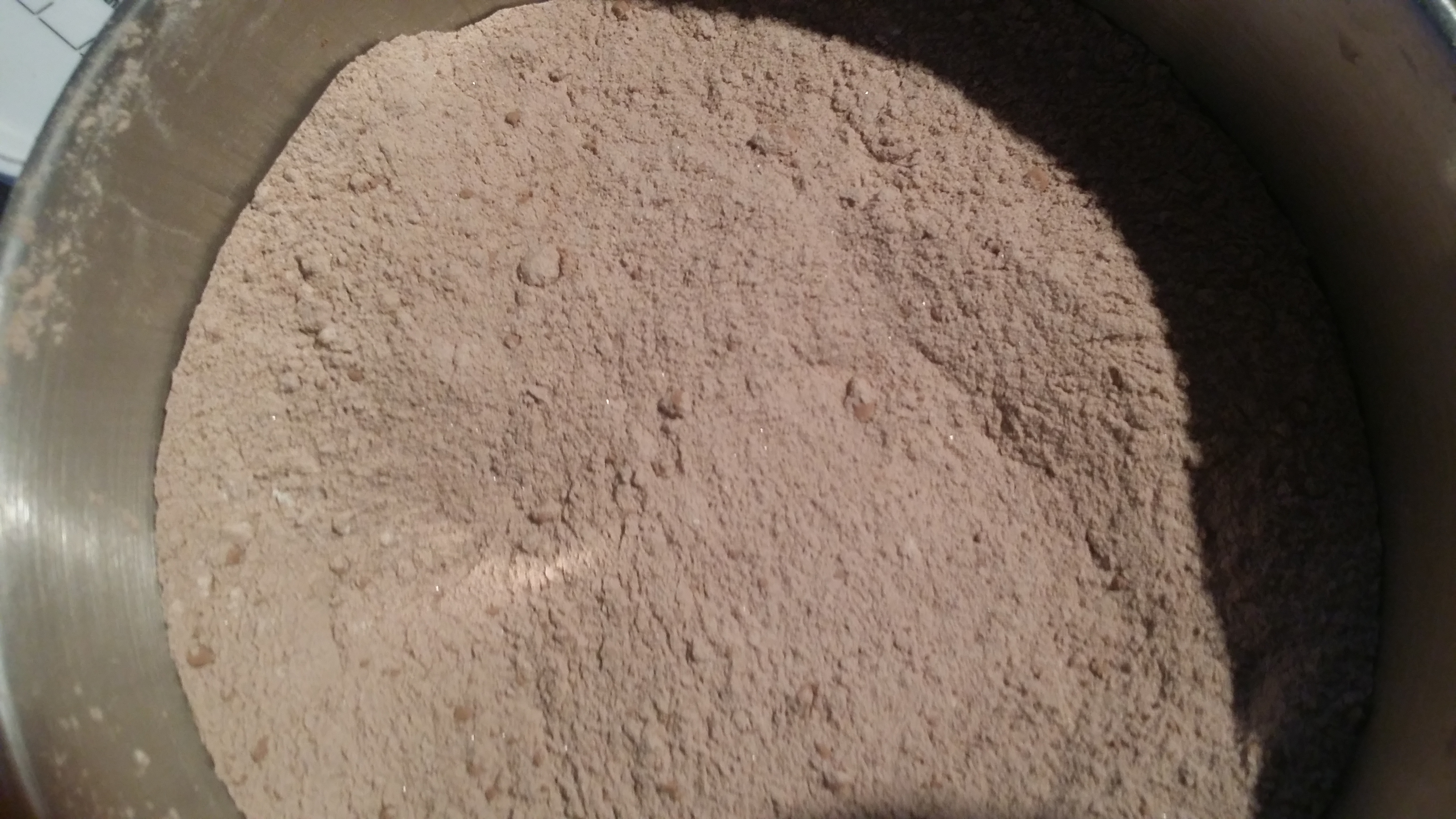 In a separate bowl mix together flour, sugar, cocoa powder, baking powder, baking soda and salt.